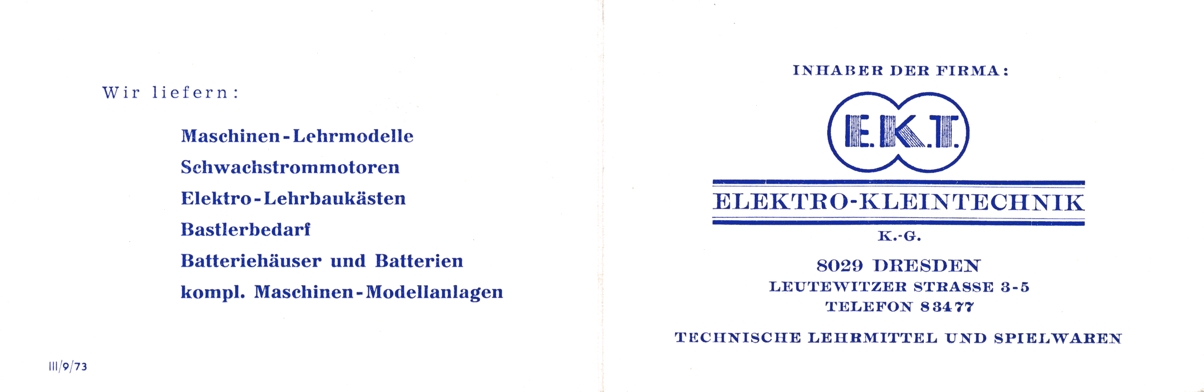 Sollten auch Sie Firmenschriften oder andere Belege zur Geschichte der Firma E.K.T. haben wäre ich sehr über eine Mitteilung erfreut.